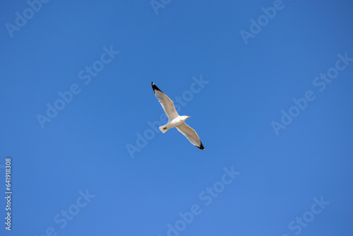© Byron Doyle-Zerbo, Obraz premium gull flying across blue sky