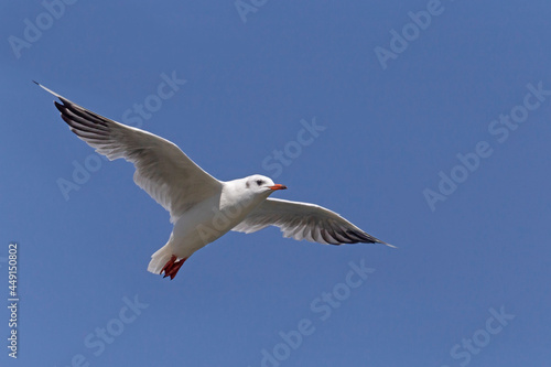 © romantiche, Obraz premium gull flying in a clear blue sky