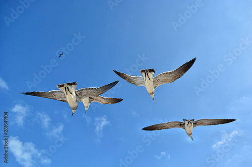 Fototapeta premium Gull flying with a blue sky background