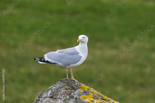 © Pascale Gueret, Obraz premium Gull standing on the rock in Ireland, funny head in front