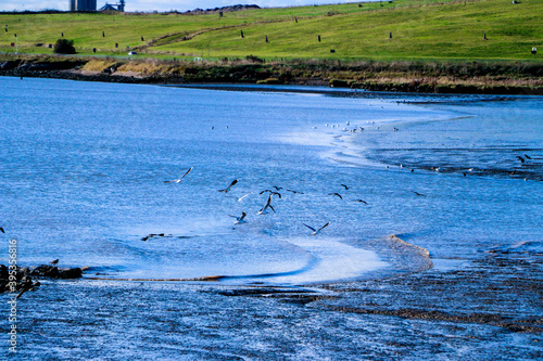 Fototapeta premium Gulls flying over the shore