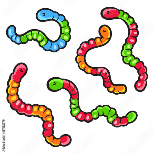 © Oleksandr Pokusai, Naklejka premium gummy chewy worms candies pinup pop art retro PNG illustration. Comic book style imitation.