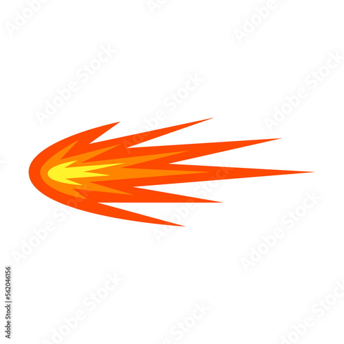 © Bro Vector, Obraz premium Gunshot on white background cartoon illustration. Orange gun flash with fire, explosive effect or bullet trace. Explosion, weapon, blast, burst concept
