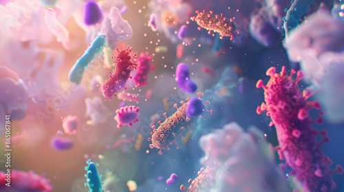 Fototapeta premium Gut bacteria or microbiota, showing the variety of microscopic organisms in our digestive tract that play a key role in health and digestion.