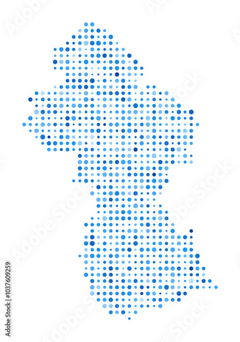 © Eugene Ga, Fototapeta premium Guyana Dot Map. Country digital style shape. Guyana vector image. Country shape blue circular dots. Creative vector illustration.