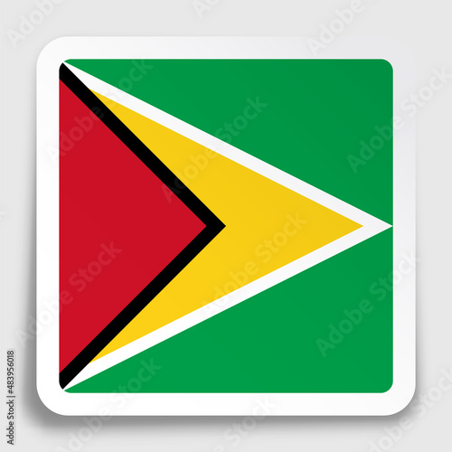Obraz premium Guyana flag icon on paper square sticker with shadow. Button for mobile application or web. Vector
