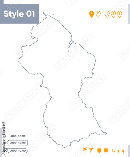 © Александр Филинков, Fototapeta premium Guyana - stroke map isolated on white background. Outline map. Vector map