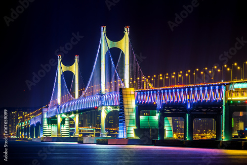 © tawatchai1990, Obraz premium GwangAn Bridge at night in Busan, South Korea.