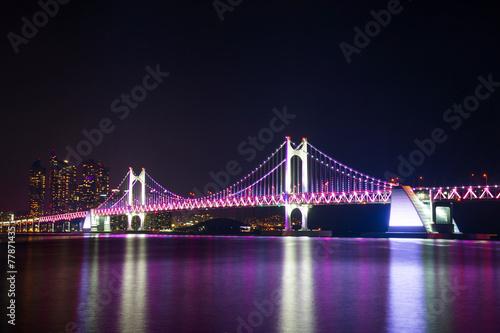 © tawatchai1990, Obraz premium Gwangan Bridge at night in Busan, South Korea.