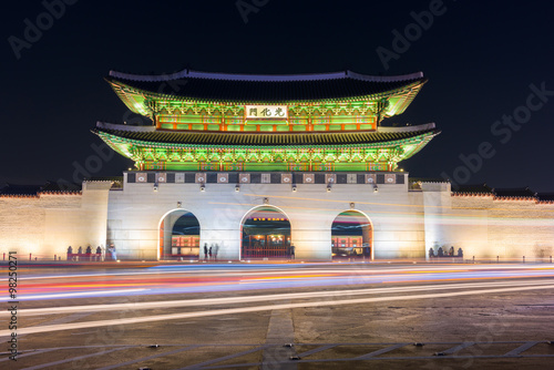 Fototapeta premium Gyeongbokgung palace at night in Seoul, South Korea