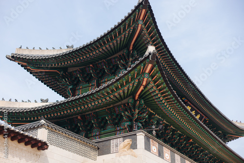 Fototapeta premium Gyeongbokgung Palace, Seoul, Jongno District, South Korea, in a spring sunny...
