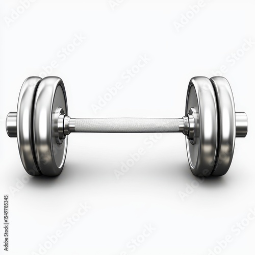 © Sergey Fedchenko, Naklejka premium Gym dumbbell with a metallic shine, isolated on white background
