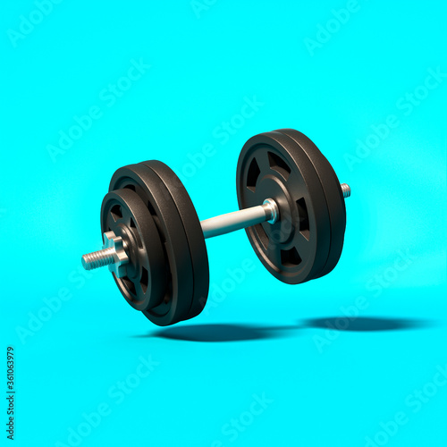 © tiero, Naklejka premium gym dumbbells on a light blue background.