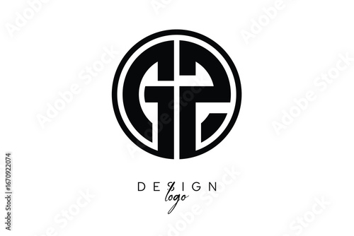 © Kusum, Fototapeta premium GZ Circular Monogram Logo Modern Black & White Emblem for Luxury Branding & Elegant Visual Identity