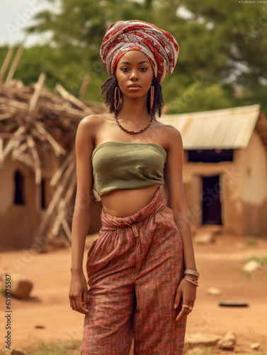 Obraz premium Hübsche Afrikanerin in traditioneller Kleidung, Generative KI