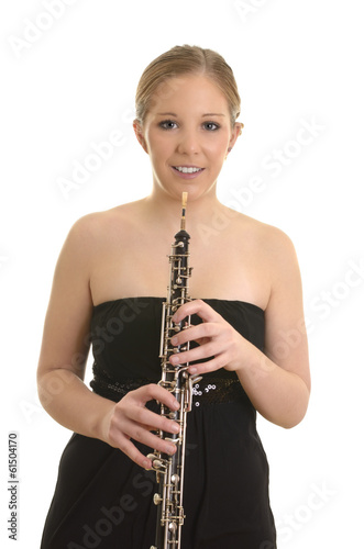 Fototapeta premium Hübsche blonde Frau spielt Oboe