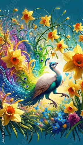 © Silvia Bogdanski, Obraz premium hübscher Pfau