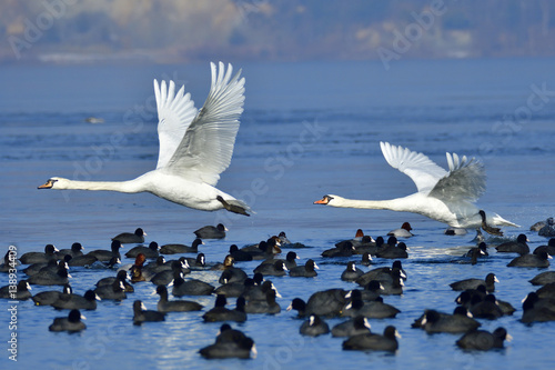 Obraz premium Höckerschwäne im Flug