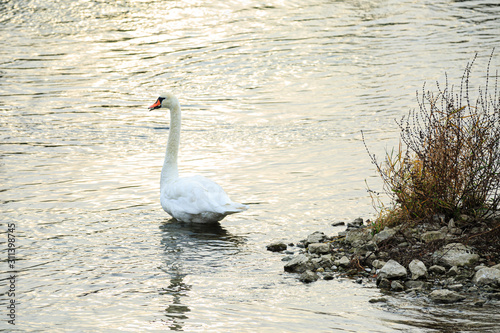 © mophoto, Fototapeta premium Höckerschwan (Cygnus olor) auf dem Wasser, Rhein