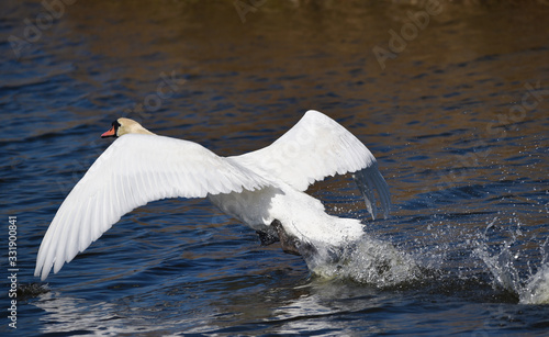 © dieter76, Fototapeta premium Höckerschwan hebt ab