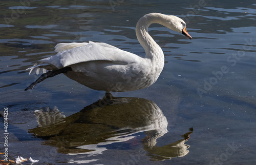 © G. Maierhofer, Fototapeta premium Höckerschwan steht auf einem Bein.