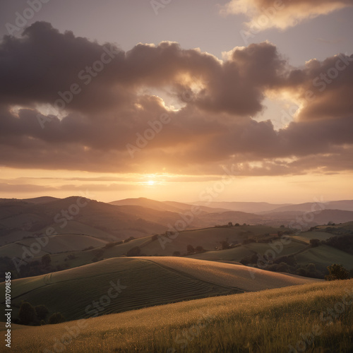 Obraz premium Hügel - Letzte Sonnenstrahlen färben die Hügel rot