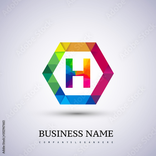 © Vectorideas, Obraz premium H letter colorful logo in the hexagonal. Vector design template elements for your application or company identity.entity.