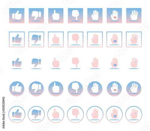 Fototapeta premium Hände, Icon-Set, blau-rosé, Vektor