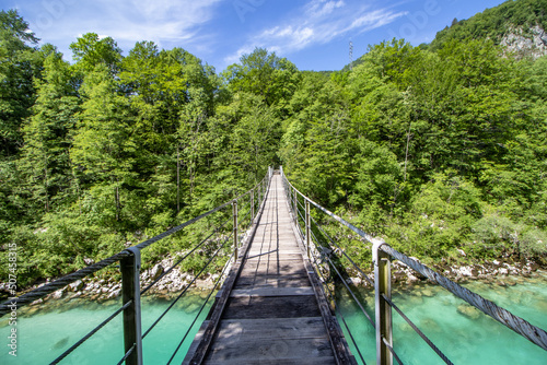 © Boris, Obraz premium Hängebrücke über der Soca bei Kobarid in Slowenien