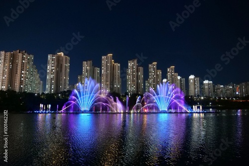 © SUNGMIN, Obraz premium 분수, 나이트, 도시, h2o, 건축, 스카이 라인, 라이트, 공원, 건물, 도시 풍경, 도시, 도심, 여행, 호수, 시카고, 저녁, sky, 마천루, 맨해튼, 강, 분수, 바르셀로나, 경치