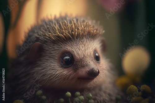 Fototapeta premium Hérisson sortant la tête de sa cachette » IA générative
