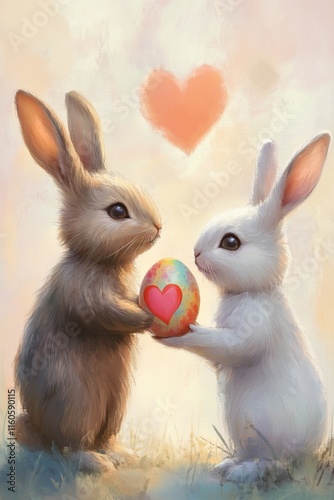 Fototapeta premium Häschen mit herzförmigem Ei