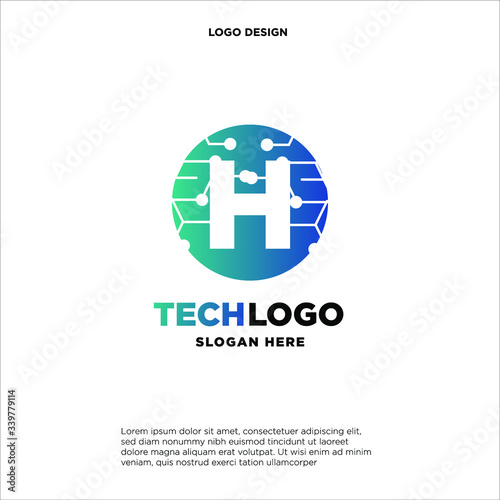 Obraz premium H Technology Circuit Alphabet. Logo. Simple, modern, futuristic. With Blue Gradation Color.