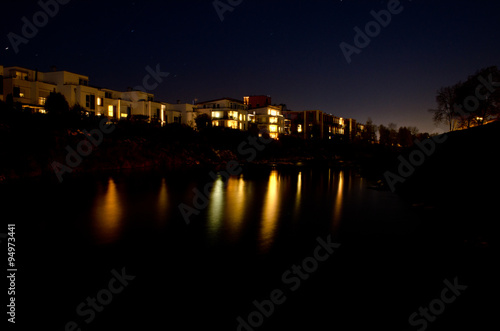 © tschorre, Obraz premium Häuser am Fluß bei Nacht