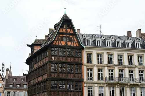 © Eduard Shelesnjak, Fototapeta premium häuser am Münsterplatz in straßburg, frankreich