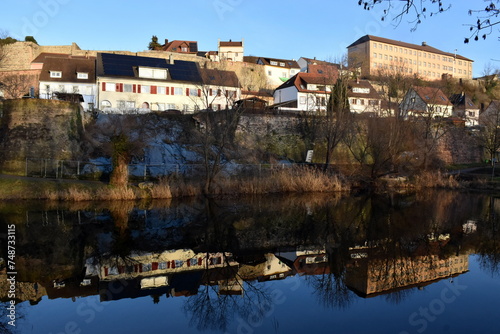 © christiane65, Fototapeta premium Häuser in Breisach spiegeln sich im Wasser