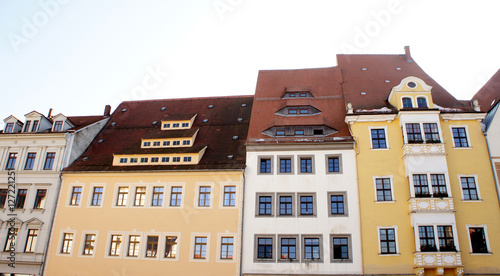 © Edith Czech, Fototapeta premium Häuserfront/Häuserfront einer Altstadt, sanierte Fassaden, Ziegeldächer mit mehrgeschossigen Dachgauben, historische Bürgerhäuser