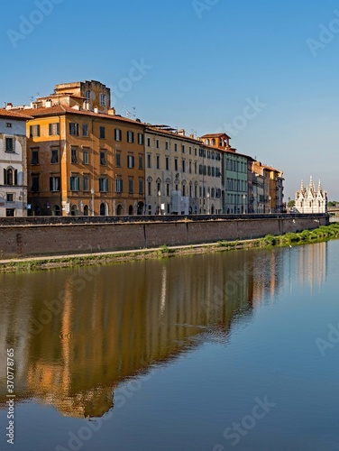 © Lapping Pictures, Fototapeta premium Häuserzeile am Fluss Arno in Pisa in der Toskana in Italien