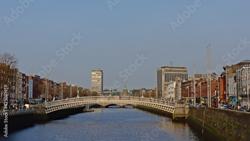 Naklejka premium Ha`penny pedestrian bridge over River Liffey in the city of Dublin, Ireland