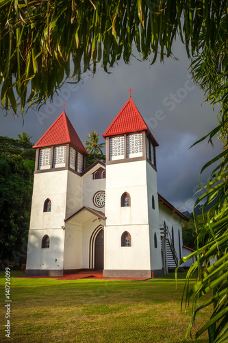 © daboost, Fototapeta premium Haapiti church in Moorea island jungle, landscape
