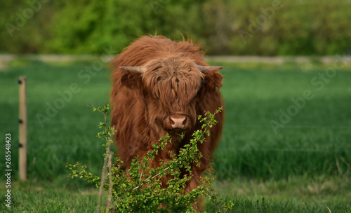 © leopictures, Fototapeta premium haariges rind mit hörnern auf der weide im freien
