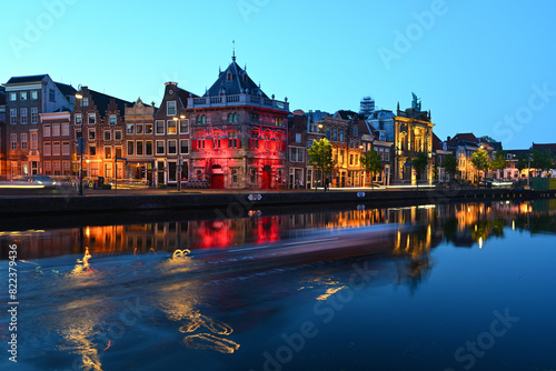 © Pavels, Obraz premium Haarlem and the Spaarne river at night.