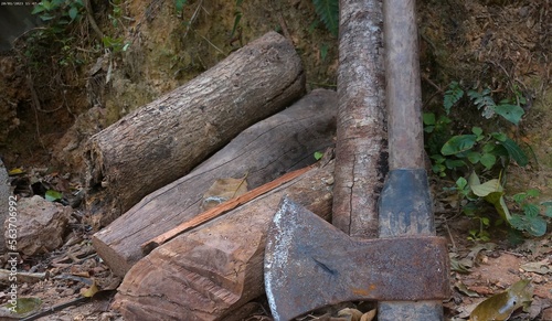 © Brandon Barrientos, Fototapeta premium Hacha y Leña