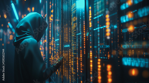 © Teeraphon, Fototapeta premium Hacker are planning to hack and attack networks and cyber security systems.abstract innovative cyber security network, using interconnected nodes to represent business partnerships on the Smart ciyt