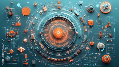© JCreative, Obraz premium Hacker prevention flat design top view scifi theme 3D render vivid