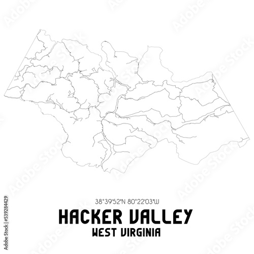 Fototapeta premium Hacker Valley West Virginia. US street map with black and white lines.