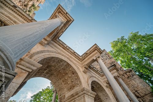 © yalcinsonat, Obraz premium Hadrian Gate, also known as the Uc Kapilar, at the entrance to Antalya Old Town or Kaleici on a sunny day