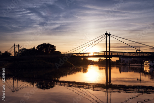 © Olliventure, Fototapeta premium Hafen Geesthacht im Sonnenuntergang