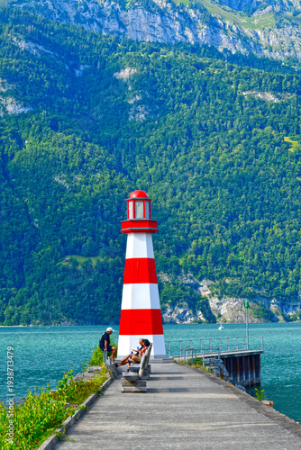 © Ilhan Balta, Fototapeta premium Hafen Unterterzen Gemeinde Quarten am Südufer des Walensees, Kanton St. Gallen