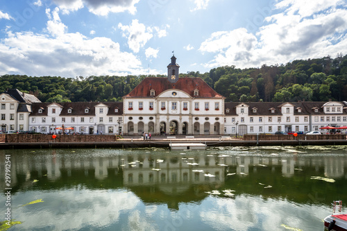 Naklejka premium Hafenbecken und Rathaus, Bad Karlshafen, Hessen, Deutschland